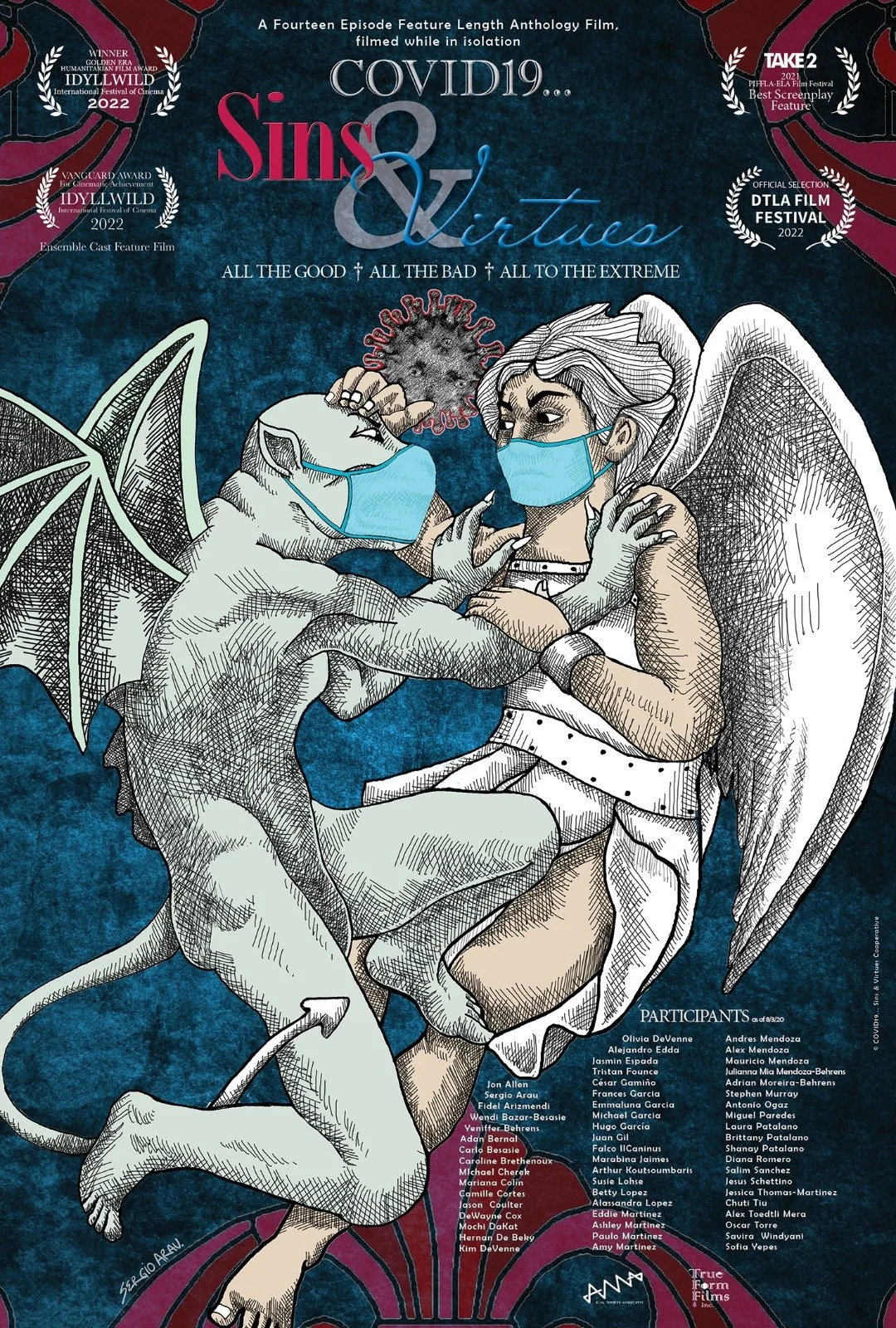 In April 2020, in 13 cities and 2 countries, 58 filmmakers got together to build an anthology of episodes each based on one of the 7 cardinal sins (Sloth, Greed, Lust, Envy, Wrath, Gluttony and Pride) or on one of the 7 cardinal virtues (Prudence, Temperance, Hope, Courage, Faith, Charity and Justice).